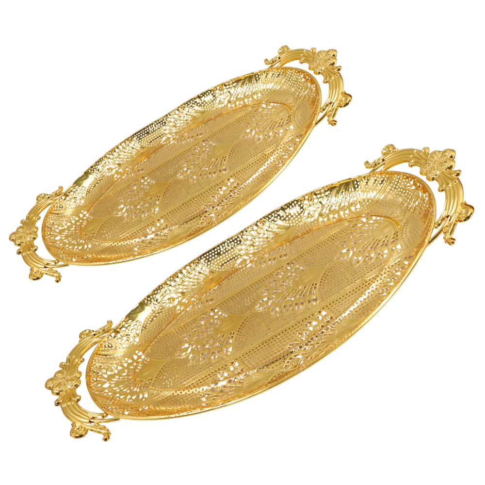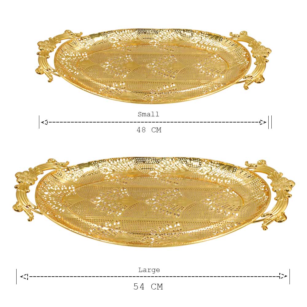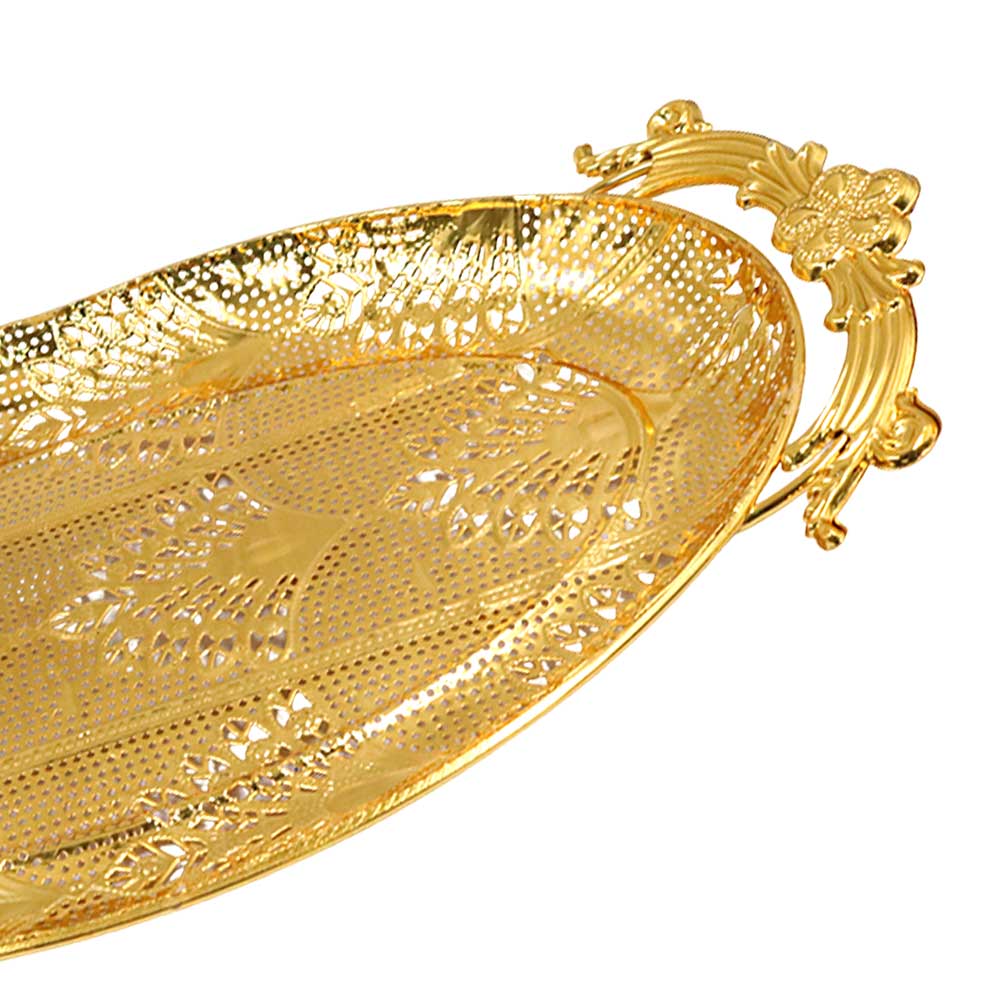 Luxury Gold-Plated Metal Serving Tray with Ornate Handles | Elegant Decorative Oval Tray for Home & Events - 600Luxury Gold-Plated Metal Serving Tray with Ornate Handles | Elegant Decorative Oval Tray for Home & Events – 600