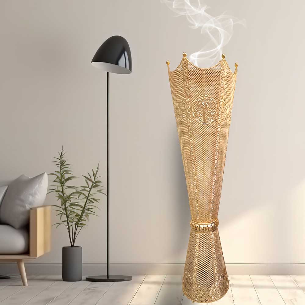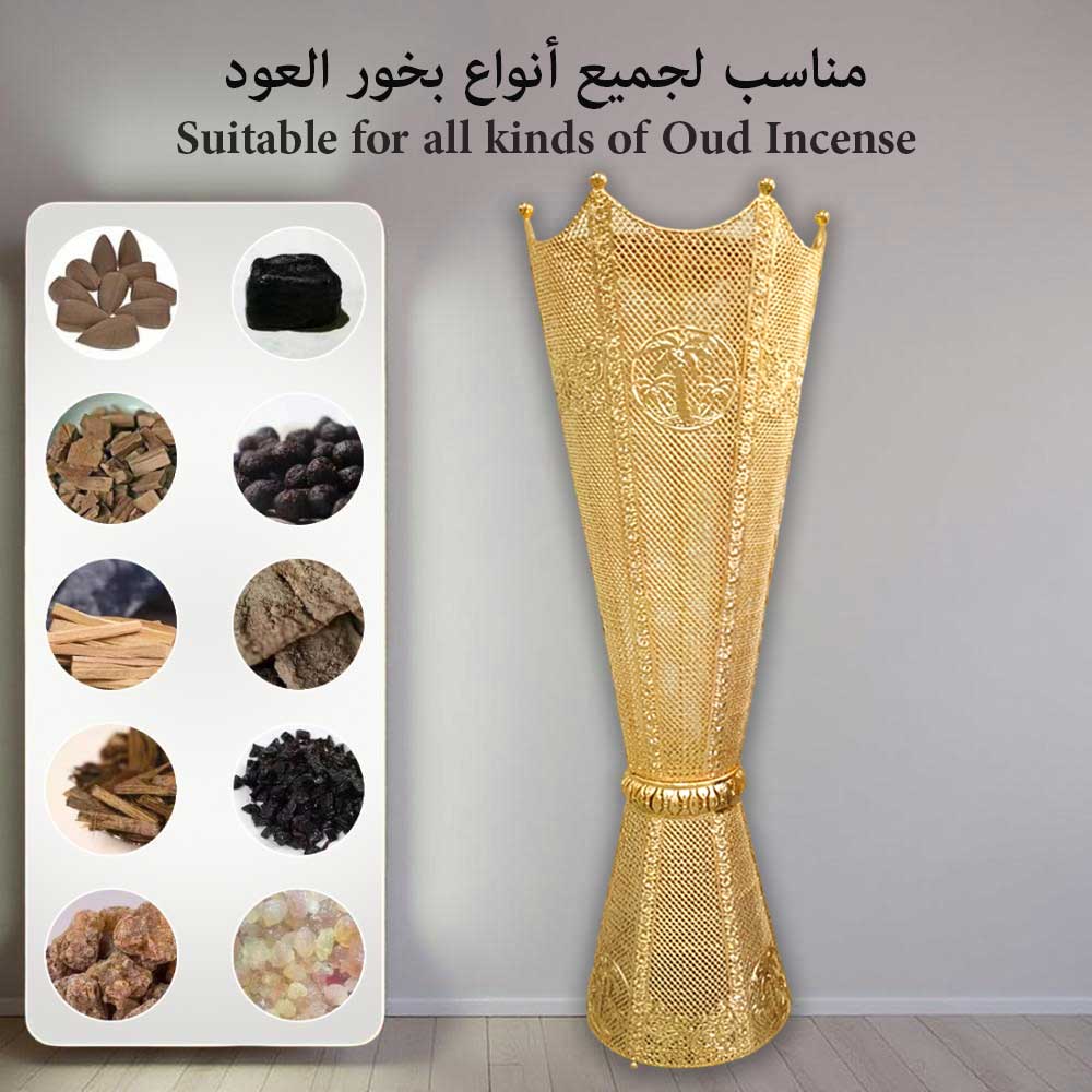 Bakhoor BoSidin – Large Size Bukhoor Incense Burner 100 cm tall Floor-Standing Oud Holder Charcoal Censer Gold- 868