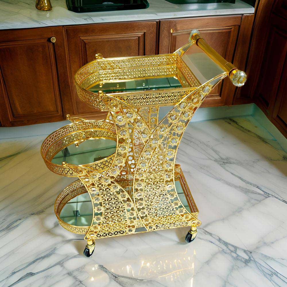 Luxurious Gold Metal Serving Trolley Cart with Multi-Tier Storage for Stylish Home Entertaining and Décor – CC24