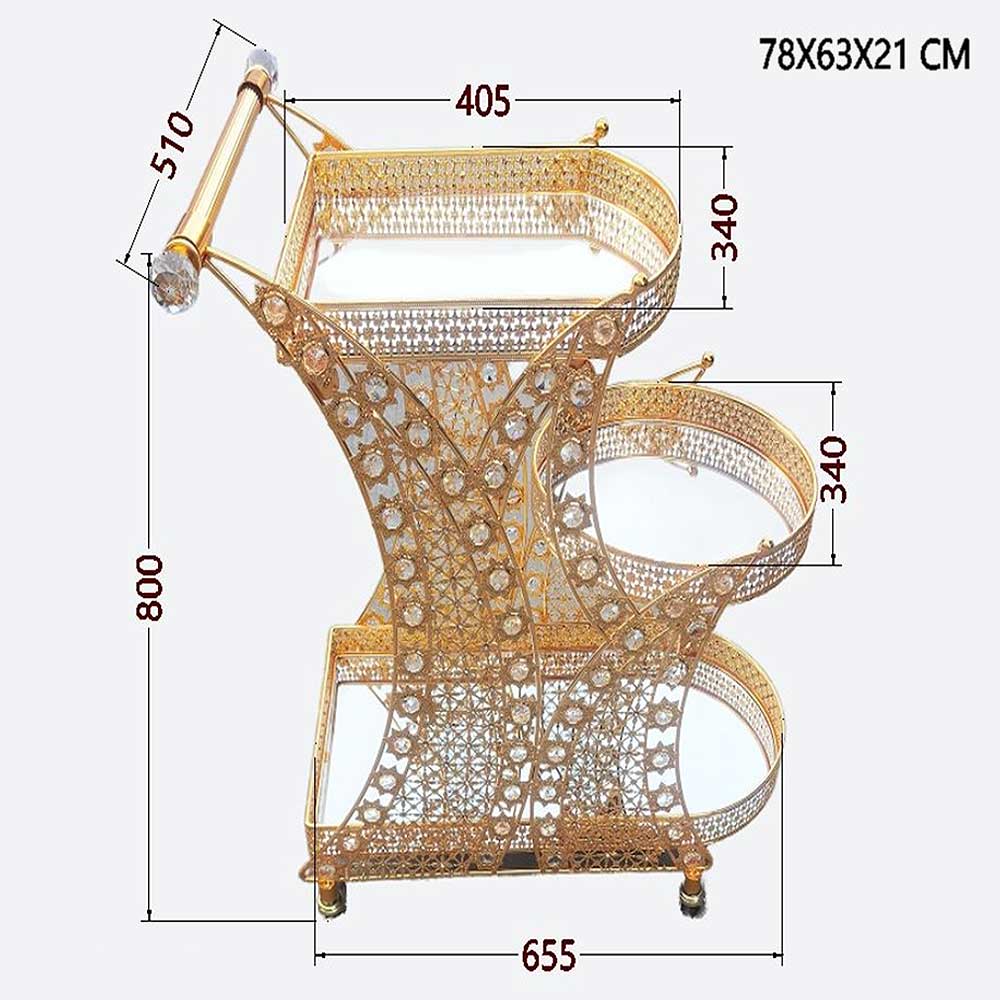 Luxurious Gold Metal Serving Trolley Cart with Multi-Tier Storage for Stylish Home Entertaining and Décor - CC24Luxurious Gold Metal Serving Trolley Cart with Multi-Tier Storage for Stylish Home Entertaining and Décor – CC24
