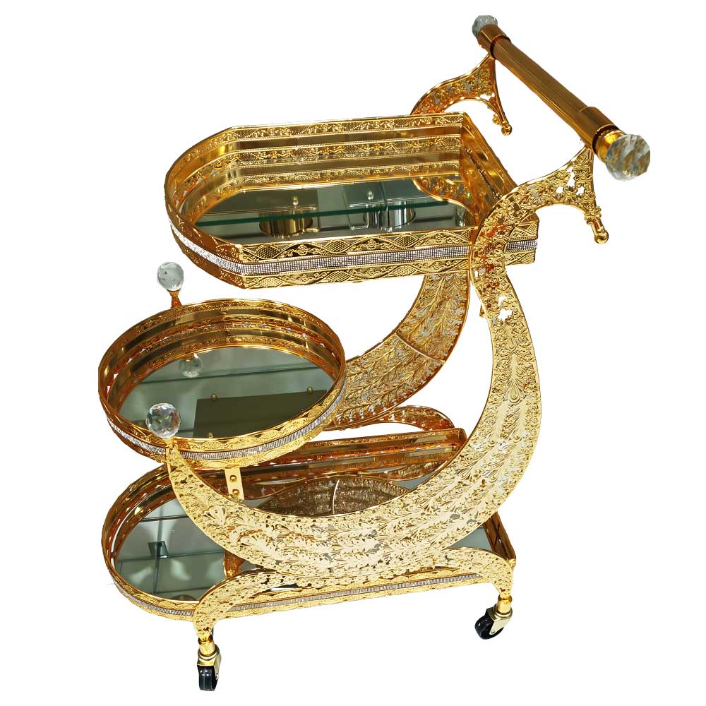 Luxurious Gold Metal Serving Trolley Cart with Multi-Tier Storage for Stylish Home Entertaining and Décor - CC33Luxurious Gold Metal Serving Trolley Cart with Multi-Tier Storage for Stylish Home Entertaining and Décor – CC33