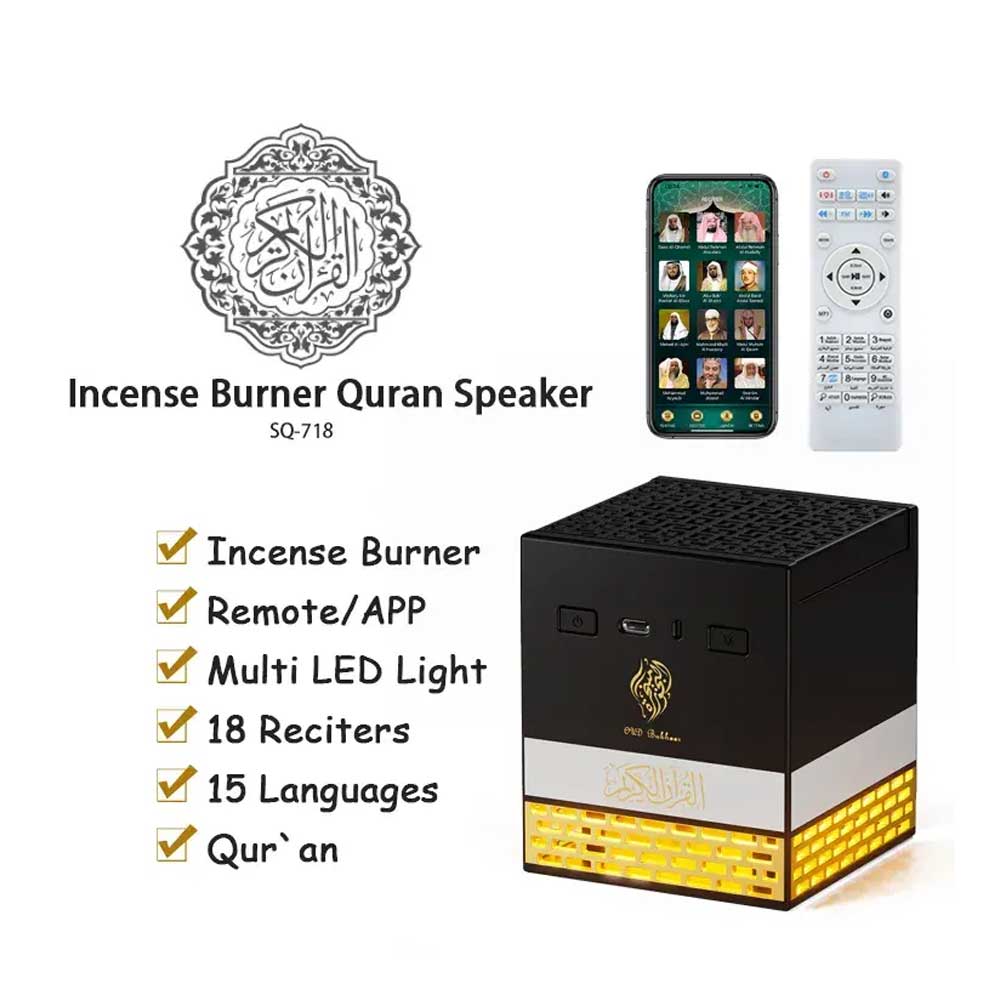 Multi-LED Light Rechargeable Incense Oud Burner with Full Quran Muslim Speaker Remote and App Control – SQ-718